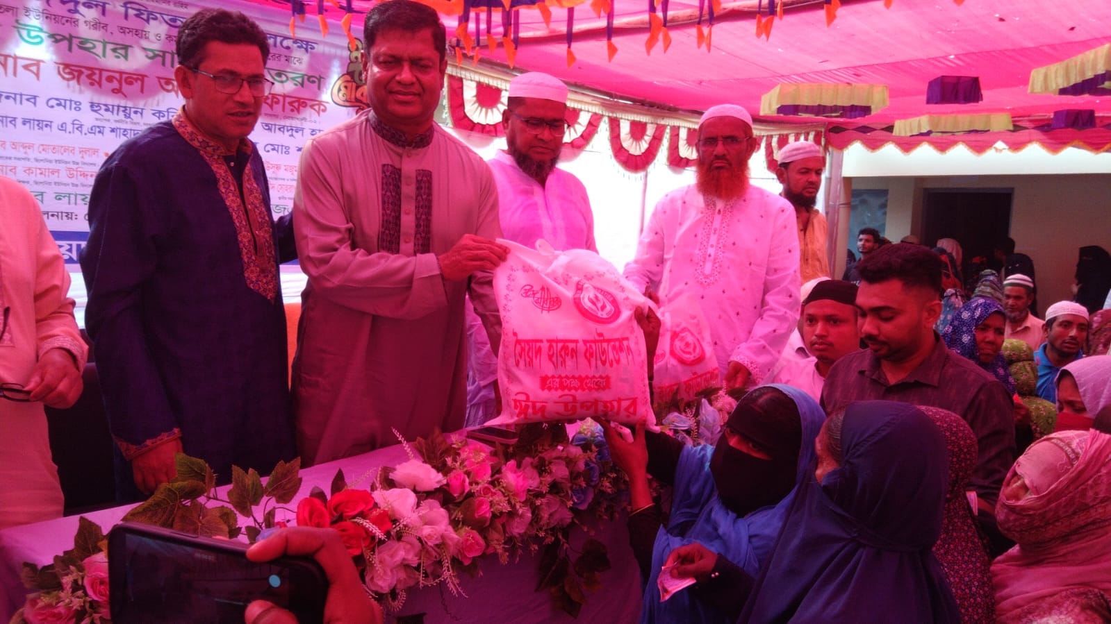অনুষ্ঠানে উপহার সামগ্রী হিসেবে সেমাই, নুডলস, চাল, চিনি, কিসমিস, বাদাম ও দুধ পাউডার বিতরণ করা হয়।