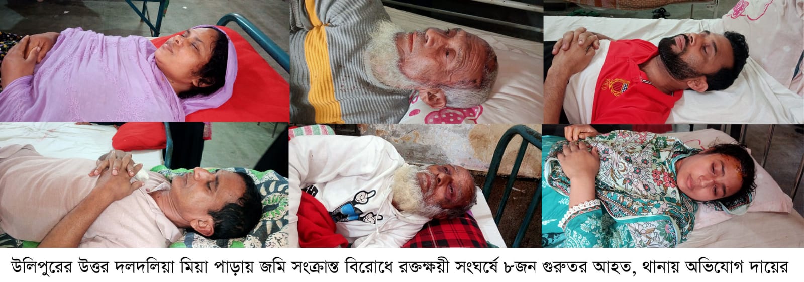 কুড়িগ্রামের উলিপুর উপজেলার উত্তর দলদলিয়া মিয়া পাড়ায় জমি সংক্রান্ত বিরোধকে কেন্দ্র করে রক্তক্ষয়ী সংঘর্ষের ঘটনা ঘটেছে। এতে নারীসহ অন্তত ৮ জন গুরুতর আহত হয়েছেন। আহতদের কুড়িগ্রাম জেনারেল হাসপাতালে ভর্তি করে চিকিৎসা দেওয়া হচ্ছে। এ ঘটনায় উলিপুর থানায় একটি লিখিত অভিযোগ দায়ের করা হয়েছে।