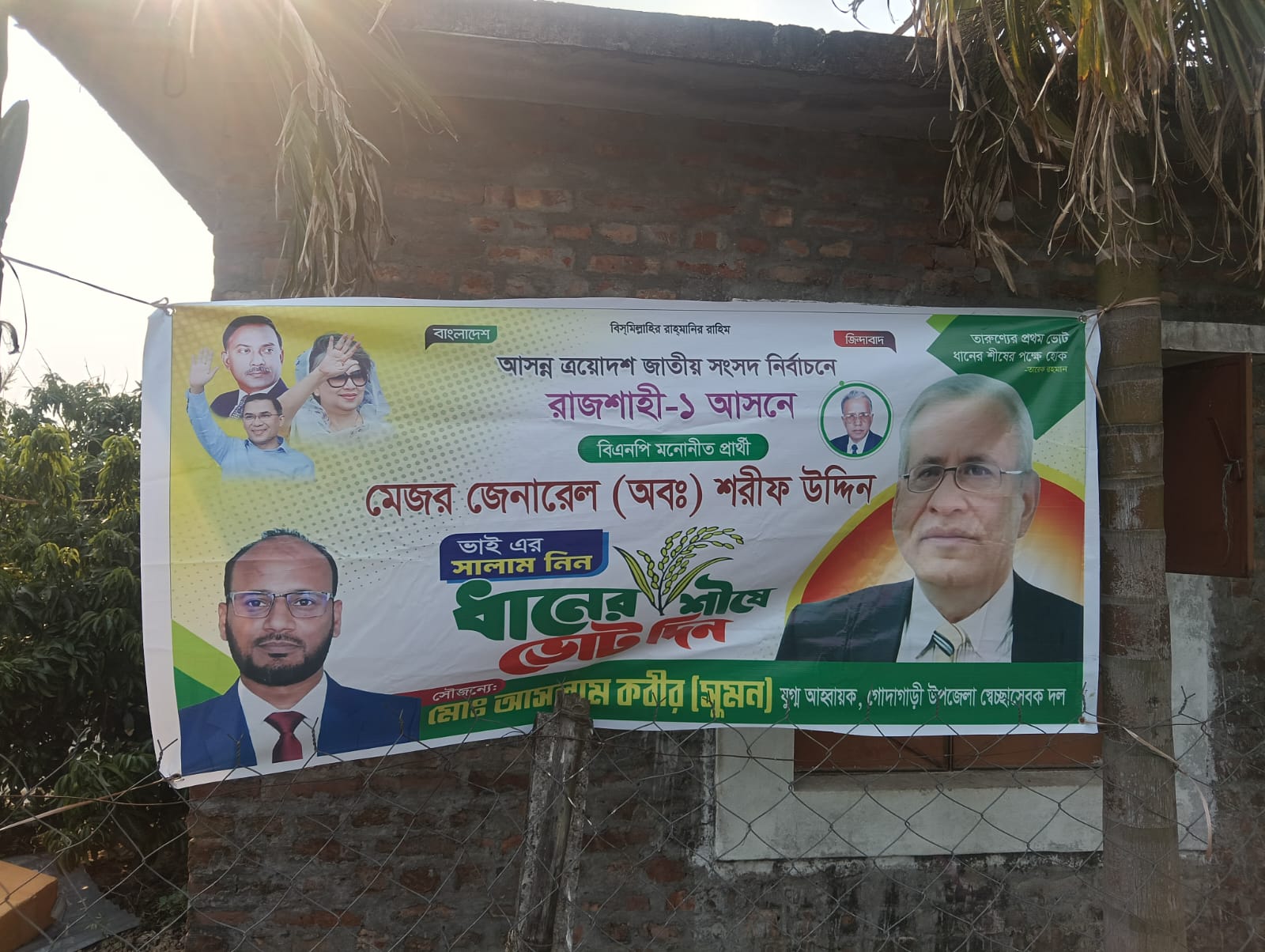 অভিযোগে আরও বলা হয়, গত ৫ মার্চ ২০২৬ তারিখ বিকেল আনুমানিক ৩টার দিকে অভিযুক্ত আসলাম কবির জোরপূর্বক বাগানে প্রবেশ করে সেখানে নিয়োজিত পাহারাদারদের মারধর করে বের করে দেন। পরবর্তীতে তিনি বাগানটির নিয়ন্ত্রণ নিয়ে রাজশাহী-১ (গোদাগাড়ী-তানোর) আসনের বিএনপির প্রার্থী মেজর জেনারেল (অব) শরীফ উদ্দিনের নির্বাচনী ব্যানার ও সাইনবোর্ড টাঙিয়ে বাগানটি দখলের চেষ্টা করেন বলে অভিযোগ উঠেছে।