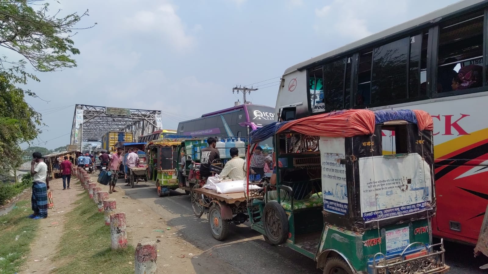 ঢাকা বরিশাল মহাসড়কের রাজৈরের টেকেরহাটে কয়েকঘন্টা তীব্র যানযট