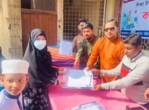 শনিবার (৩ জানুয়ারি) সকালে রাঙামাটি জেলা শহরের কাঠালতলী মসজিদের সামনে আয়োজিত এ কর্মসূচিতে প্রায় ৫০ জন শিক্ষার্থীর হাতে খাতা, কলমসহ প্রয়োজনীয় শিক্ষা উপকরণ তুলে দেওয়া হয়। পাশাপাশি শতাধিক অসহায় ও শীতার্ত মানুষের মাঝে কম্বল বিতরণ করা হয়।