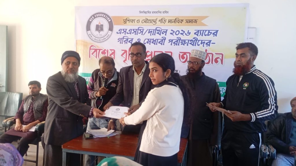 ইশিবপুরে এসএসসি ও দাখিল পরীক্ষার্থীদের মাঝে শিক্ষা প্রণোদনা বিতরণ।