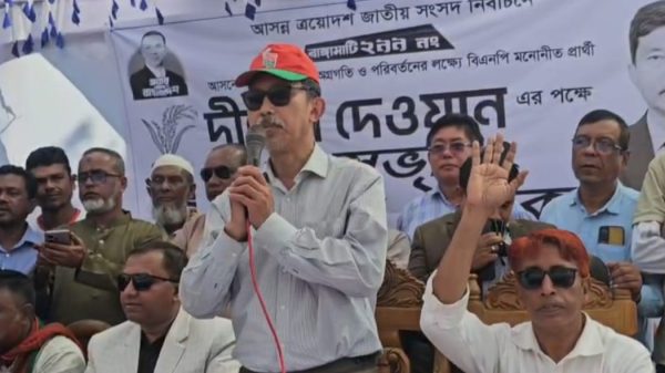 আহমদ বিলাল খান: রাঙামাটি জেলা প্রতিনিধি: বিএনপি সরকার যখন ক্ষমতায় আসে, তখনই জনগণের উন্নয়ন সম্ভব। আপনারা আমাকে সমর্থন করলে নির্বাচনে জয়লাভের মাধ্যমে এলাকার সঠিক উন্নয়ন নিশ্চিত করব। রাঙামাটি-২৯৯ সংসদীয় আসনের
